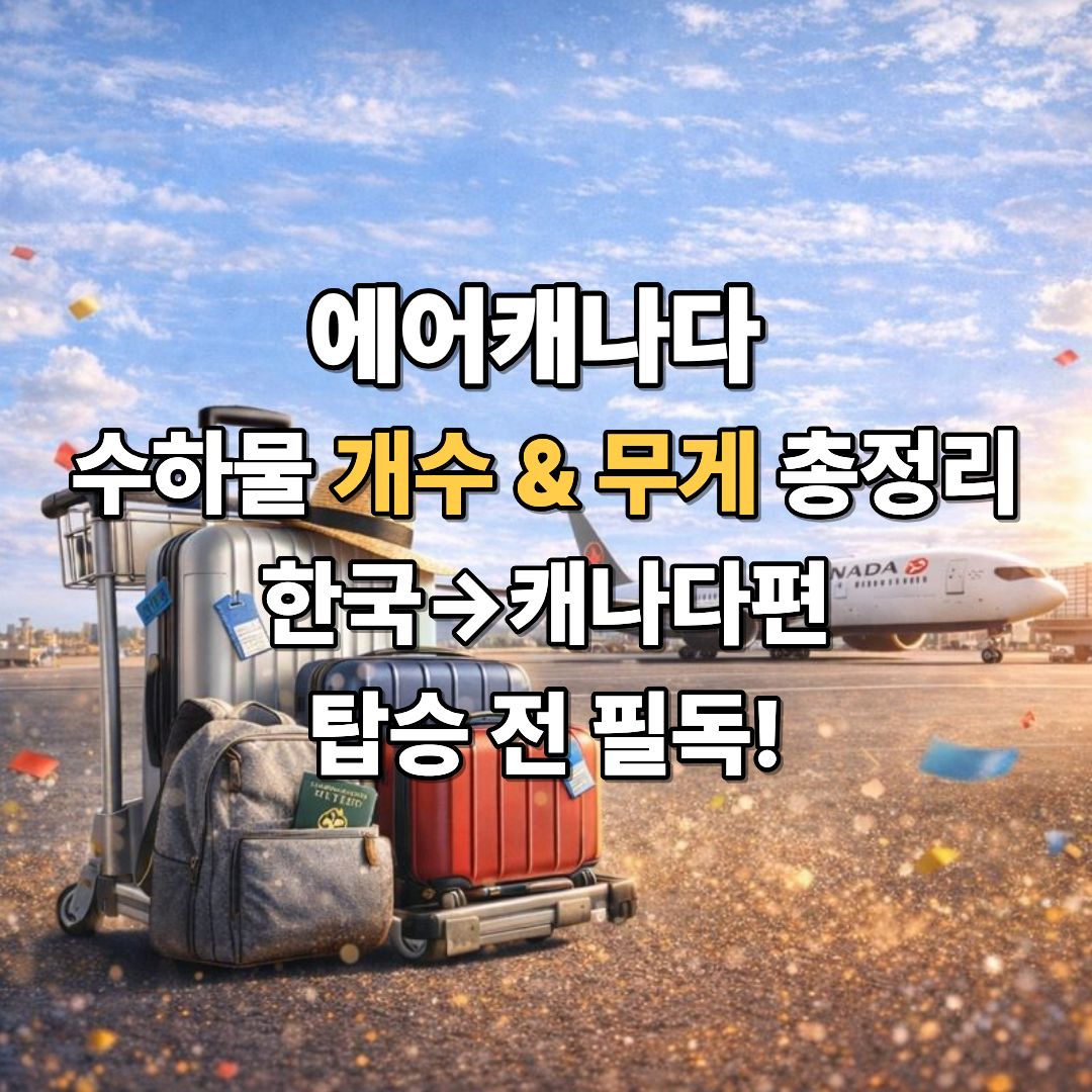 에어캐나다 한국→캐나다 노선 탑승 전 반드시 확인해야 할 수하물 규정! 기내 수하물, 무료 위탁 수하물 개수, 중량 및 크기 기준까지 쉽게 정리했습니다. 정식 링크도 함께 안내드립니다.